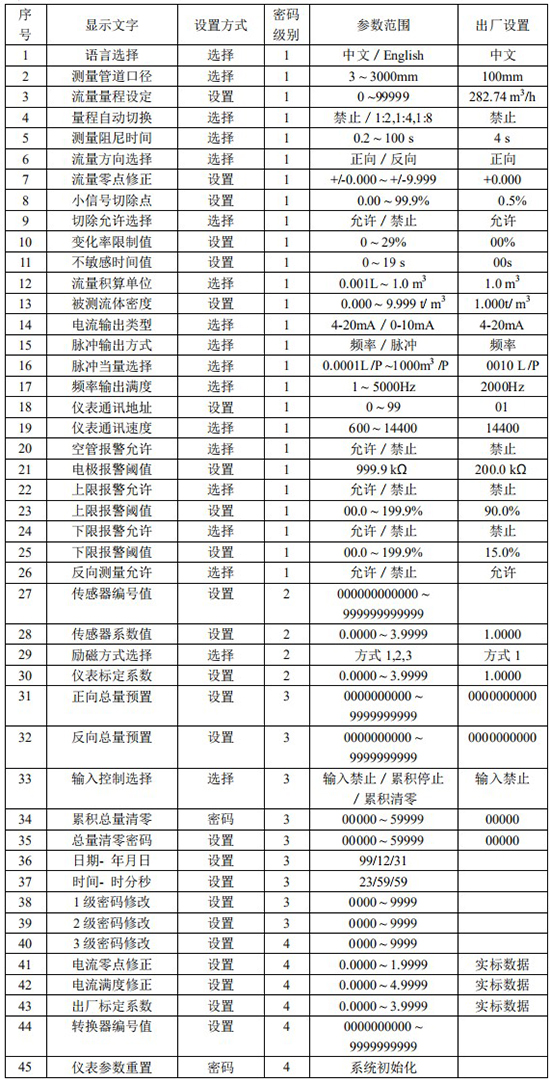 儀表參數(shù)決定儀表的運行狀態(tài)、計算方法、輸出方式。正確地選用和設(shè)置儀表參數(shù),可使儀表運行在*佳狀態(tài),能得到較高的測量顯示精度和測量輸出精度。